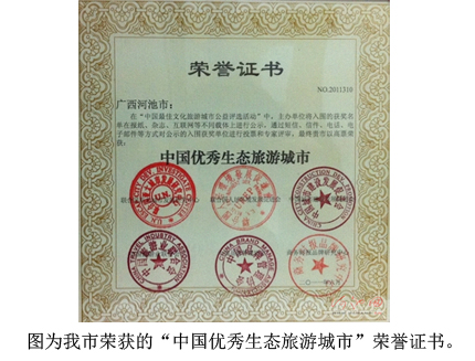 本网讯 6月23日,在海南三亚市举办的第七届中国城市品牌大会暨影响力品牌公益评选活动颁奖盛典上传来喜讯,我市荣获“中国优秀生态旅游城市”荣誉称号。
