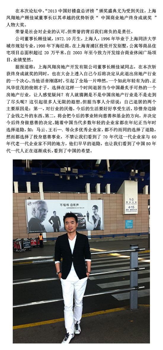 顾佳斌:荣获中国商业地产终身成就奖
