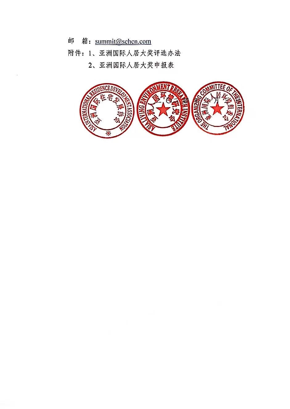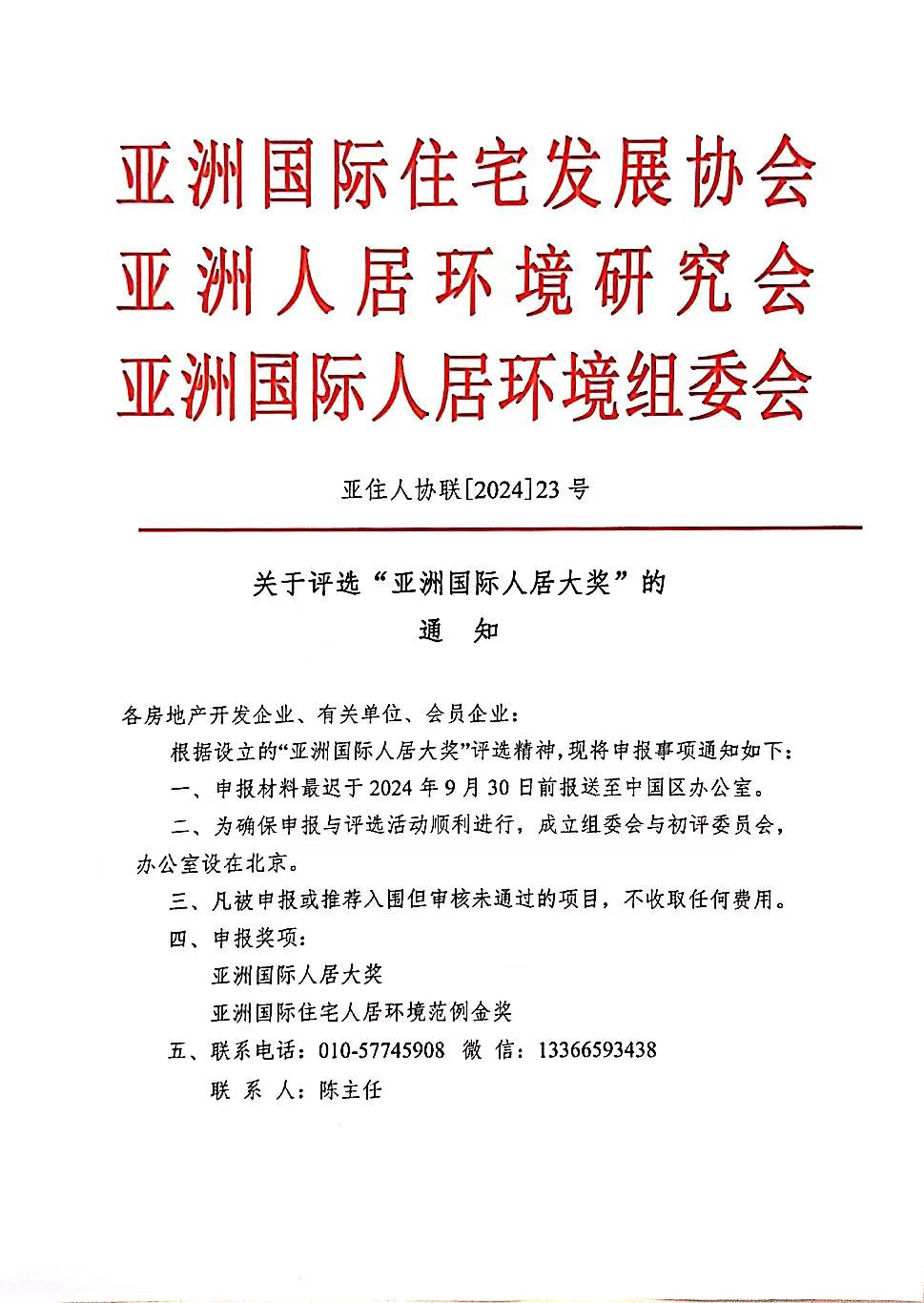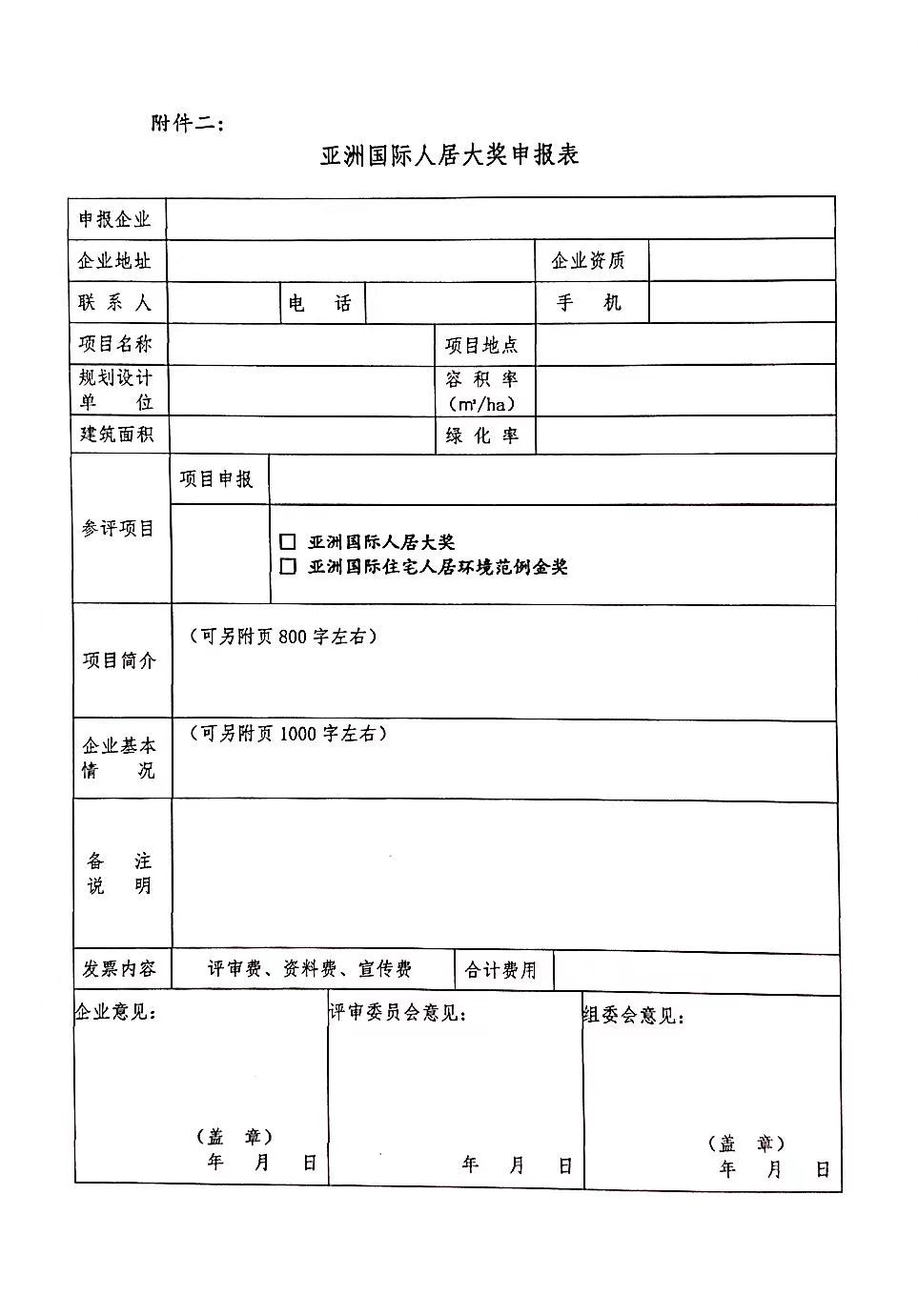 关于评选“亚洲国际人居大奖”的通知